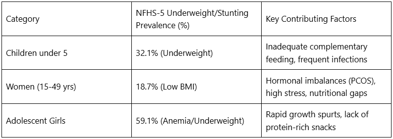 The prevalence of low BMI in India remains a significant public health concern. According to the National Family Health Survey (NFHS-5), approximately 18.7% of women and 16.2% of even the richest quintile of children are affected by undernutrition indicators. This data suggests that the issue isn’t always a lack of food, but often a lack of calorie-dense, nutrient-rich options in our modern lifestyle.