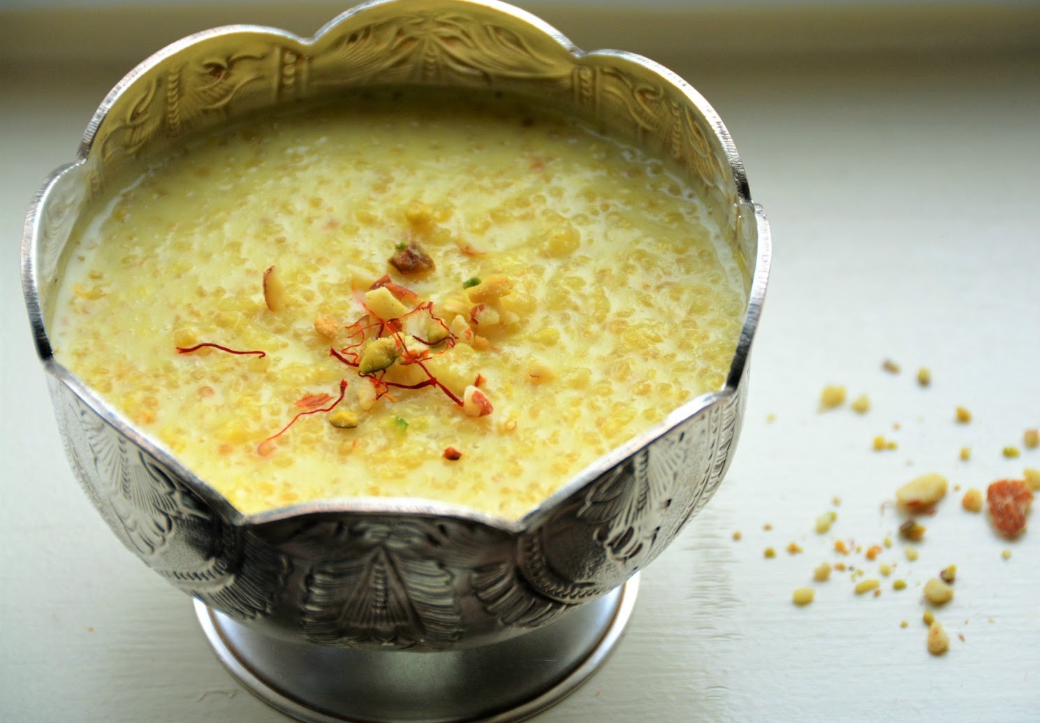 A healthy, creamy Indian-style quinoa milk pudding flavoured with cardamom and saffron — a gluten-free, protein-rich dessert perfect for warm or chilled serving.